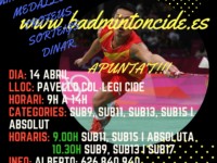 19.03.2018 APUNTA ESTA FECHA: 14 ABRIL 2018 se celebra el gran y esperado CAMPEONATO DE PRIMAVERA CLUB BADMINTON CIDE, un Torneo que nada ni nadie puede perderse. DÍA: 14 ABRIL 2018 LUGAR: PABELLÓN COLEGIO CIDE. CATEGORIAS:(Todos los jugadores jugarán 2 categorías; la suya (según su año de nacimiento) y 1 categoría superior): * Sub9 (nacidos en 2009 y posteriores) *...